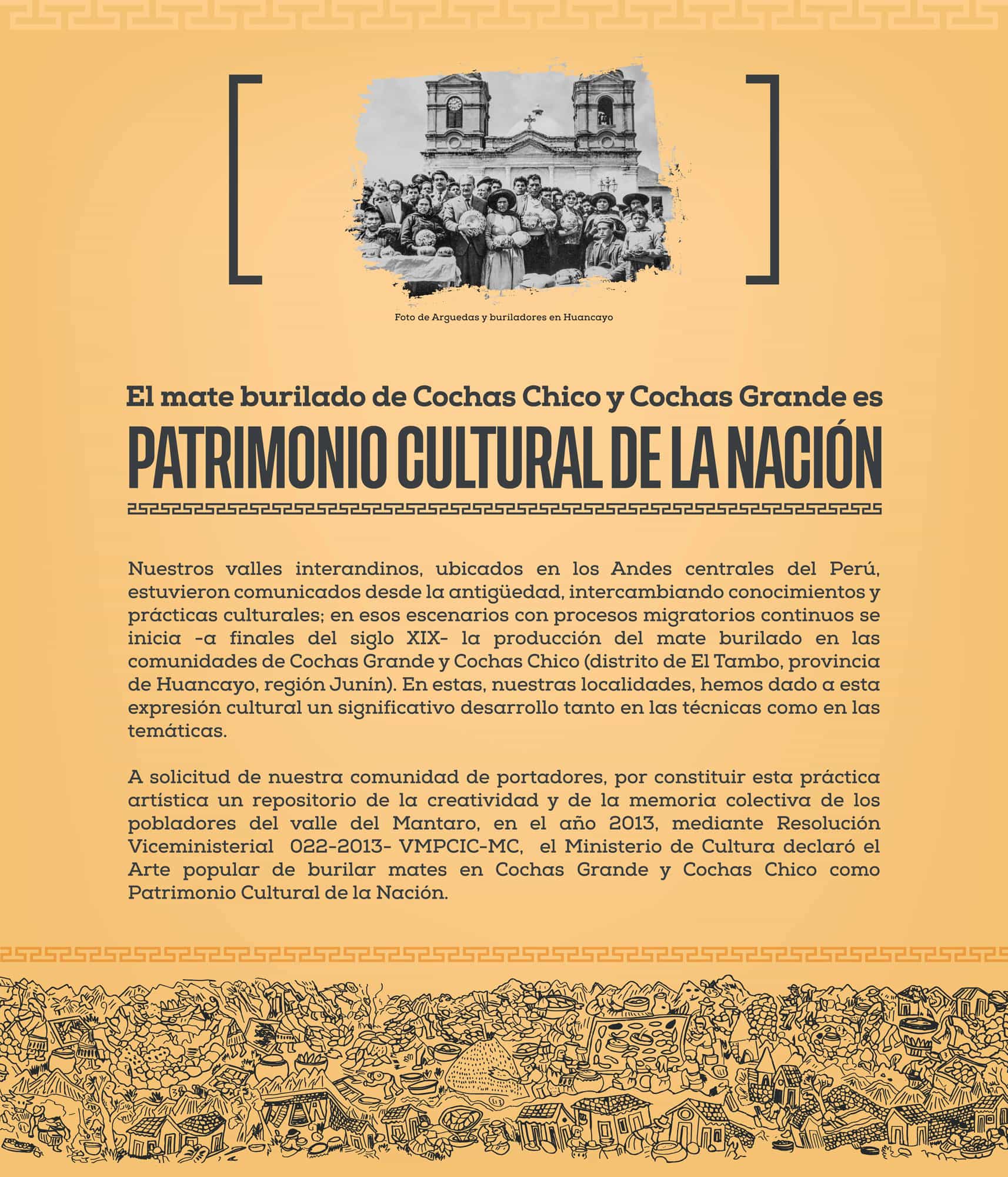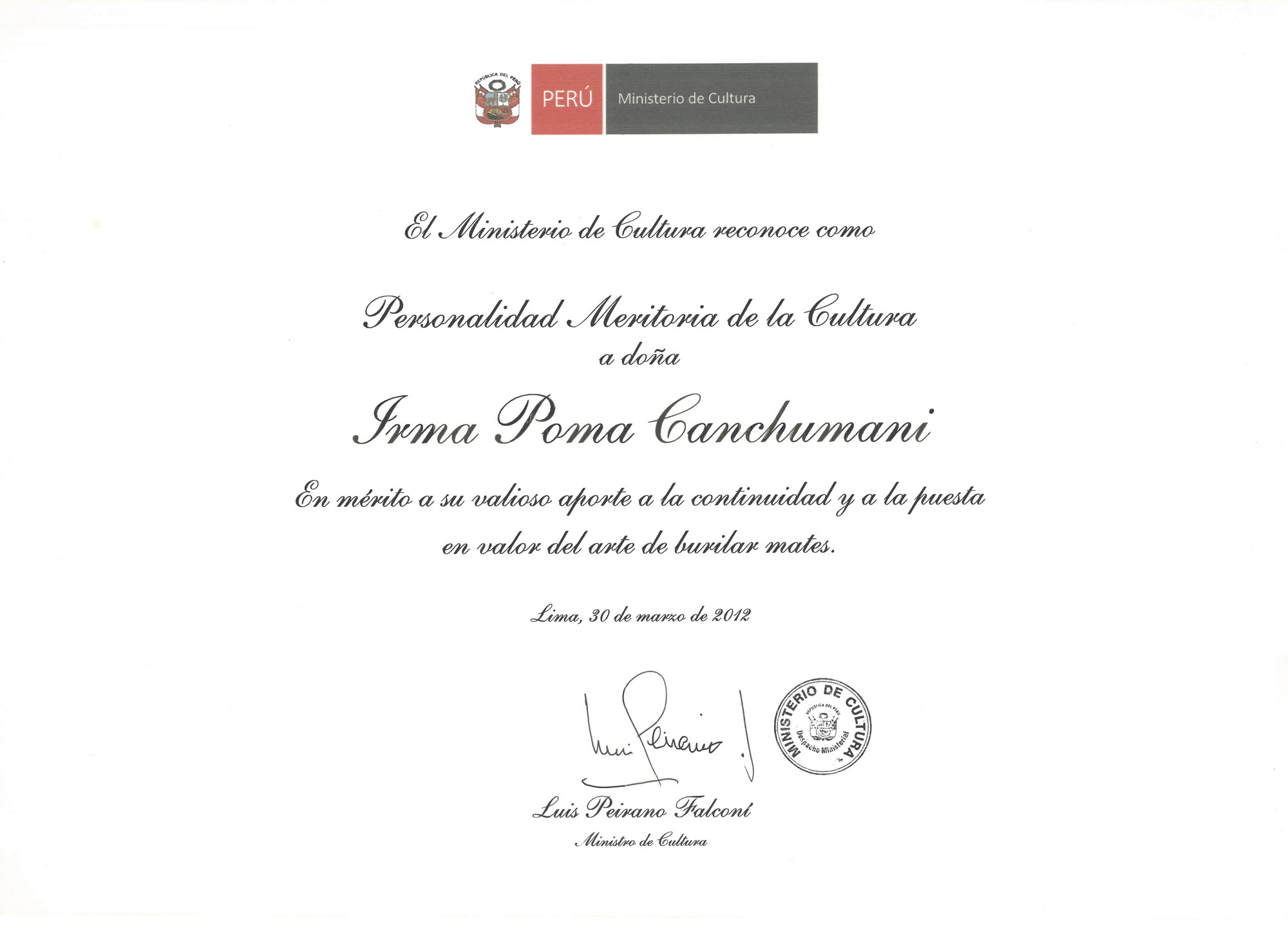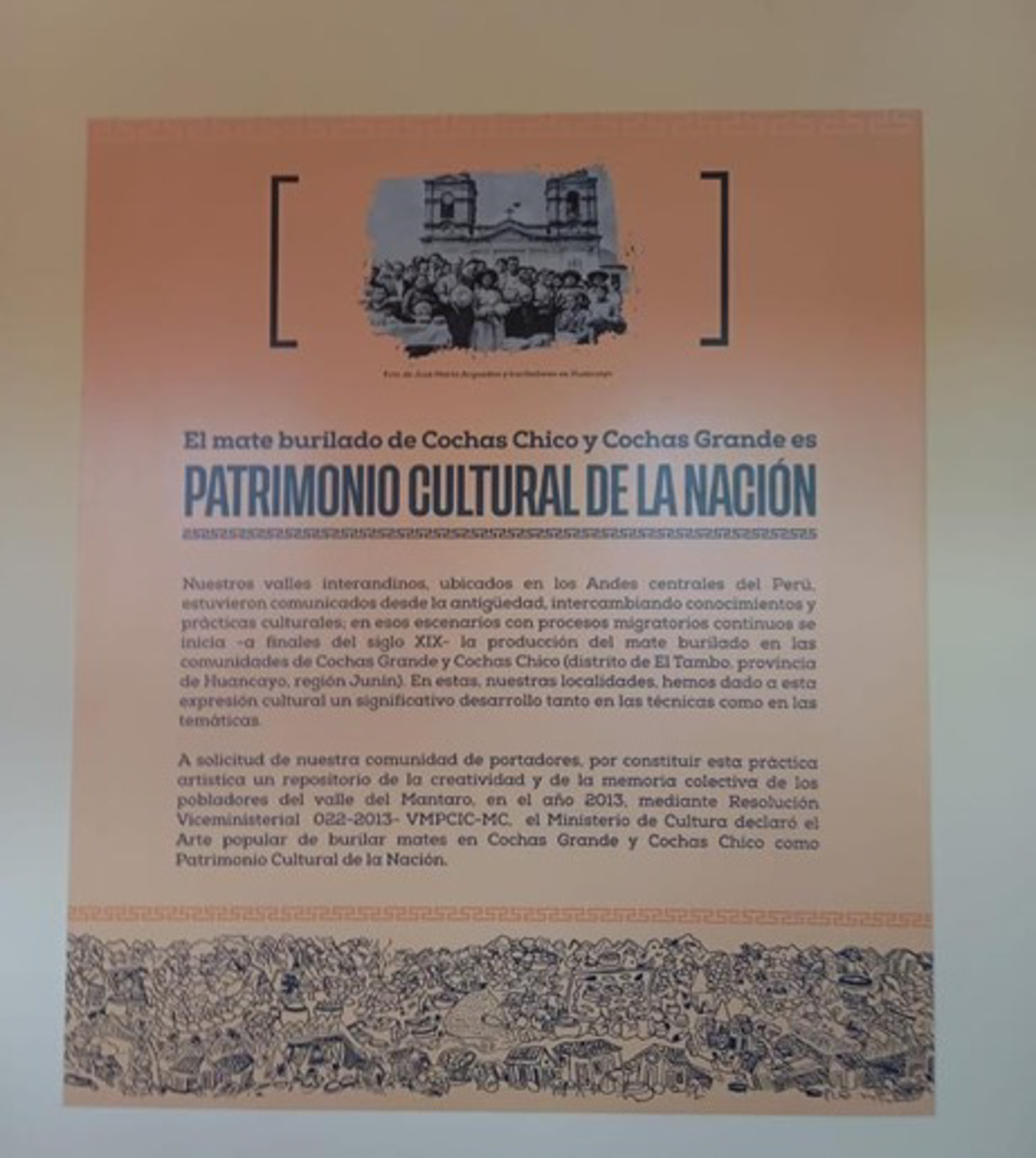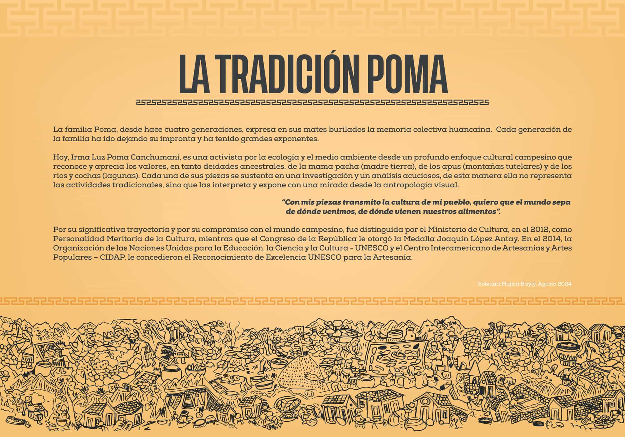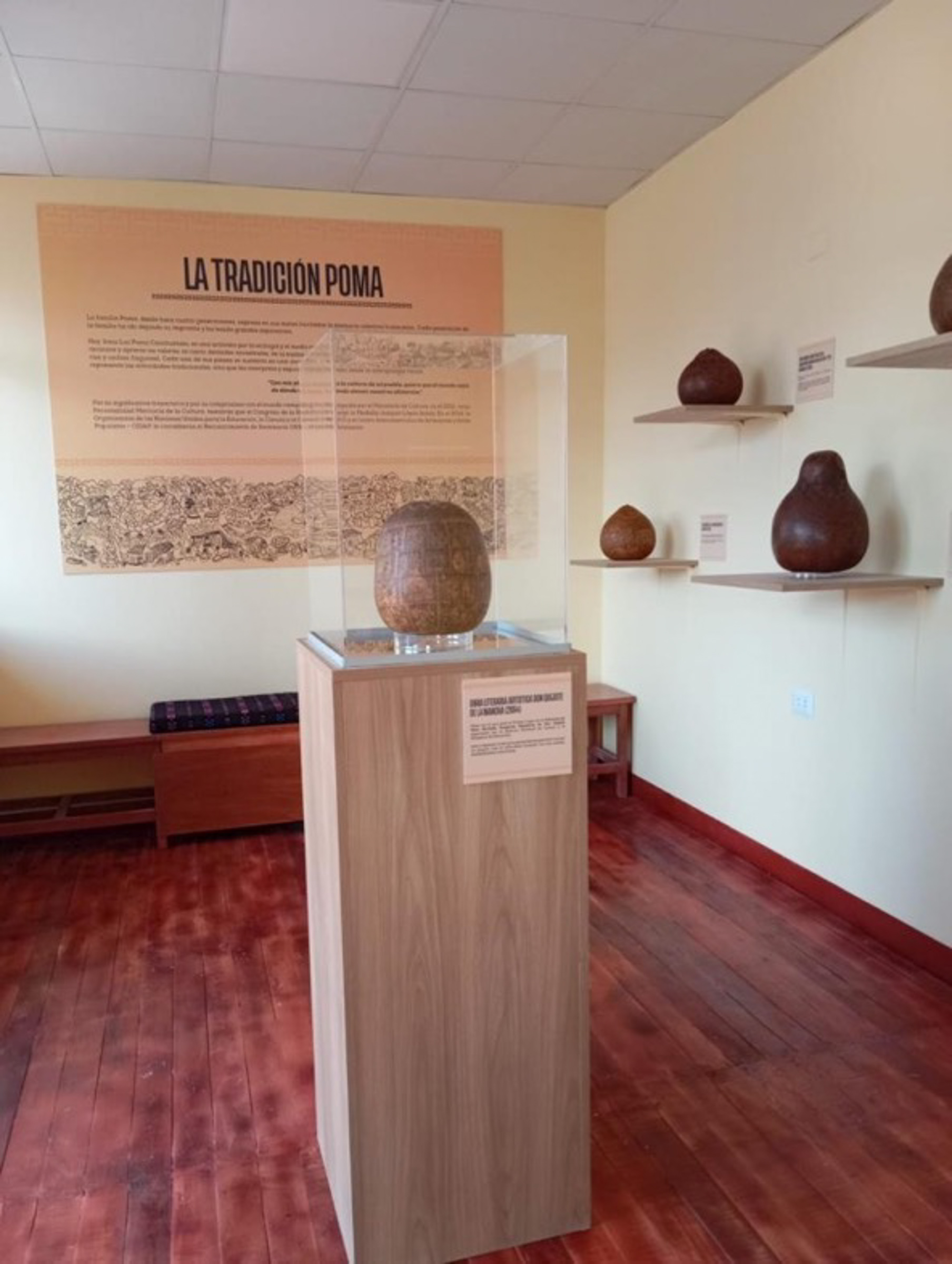 A lo largo de los últimos 20 años, la maestra Irma Poma acogió, en su vivienda, a visitantes, turistas e investigadores, interesados en conocer su arte, el arte de burilar calabazas conocidas como mates. Por ello, el proyecto “Casa Museo de Mates Burilados Floreciendo la Madre Tierra – Irma Poma Canchumani” se centró en repotenciar este espacio cultural que ya gozaba de reconocimiento por parte de la ciudadanía, a través de la implementación de una sala taller multifuncional y una galería de exhibición, dedicadas a la promoción del arte de burilar mates, a fin de que ahí se ofrezcan herramientas y pautas educativas para la difusión del arte y las técnicas vinculadas a esta original expresión cultural.